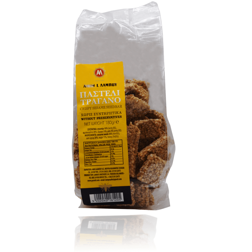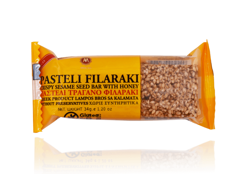 Τραγανό ή ξερό παστέλι. Το καβουρδισμένο φυσικό σουσάμι συνδυάζεται με τη ζάχαρη, τη γλυκόζη και το μέλι έτσι, έχετε στα χέρια σας ένα τρόφιμο για να γεμίσει τα κενά ενέργειας οποιοδήποτε στιγμή.